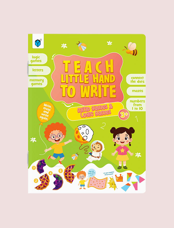 TEACH LITTLE HAND TO WRITE – Mind Games and Logic Games makes early learning enjoyable and effective. This book combines writing practice with fun mind and logic games, keeping young learners engaged while they learn essential skills.